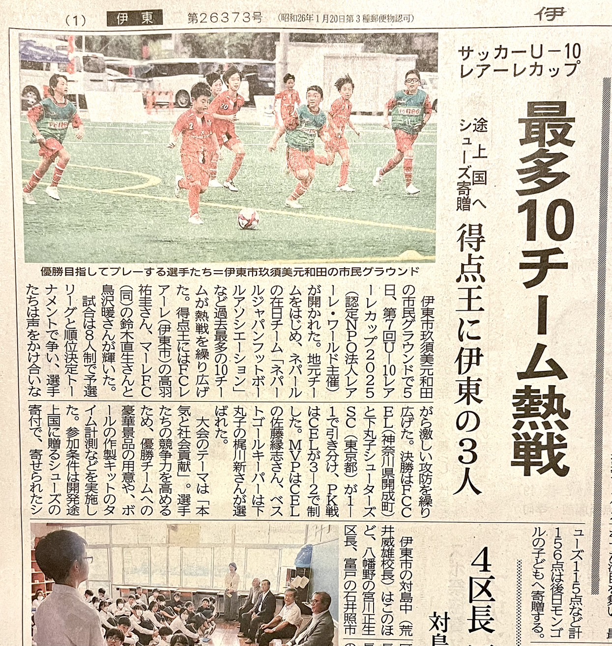 FCレアーレ初優勝 U-10大会 途上国に131点寄贈