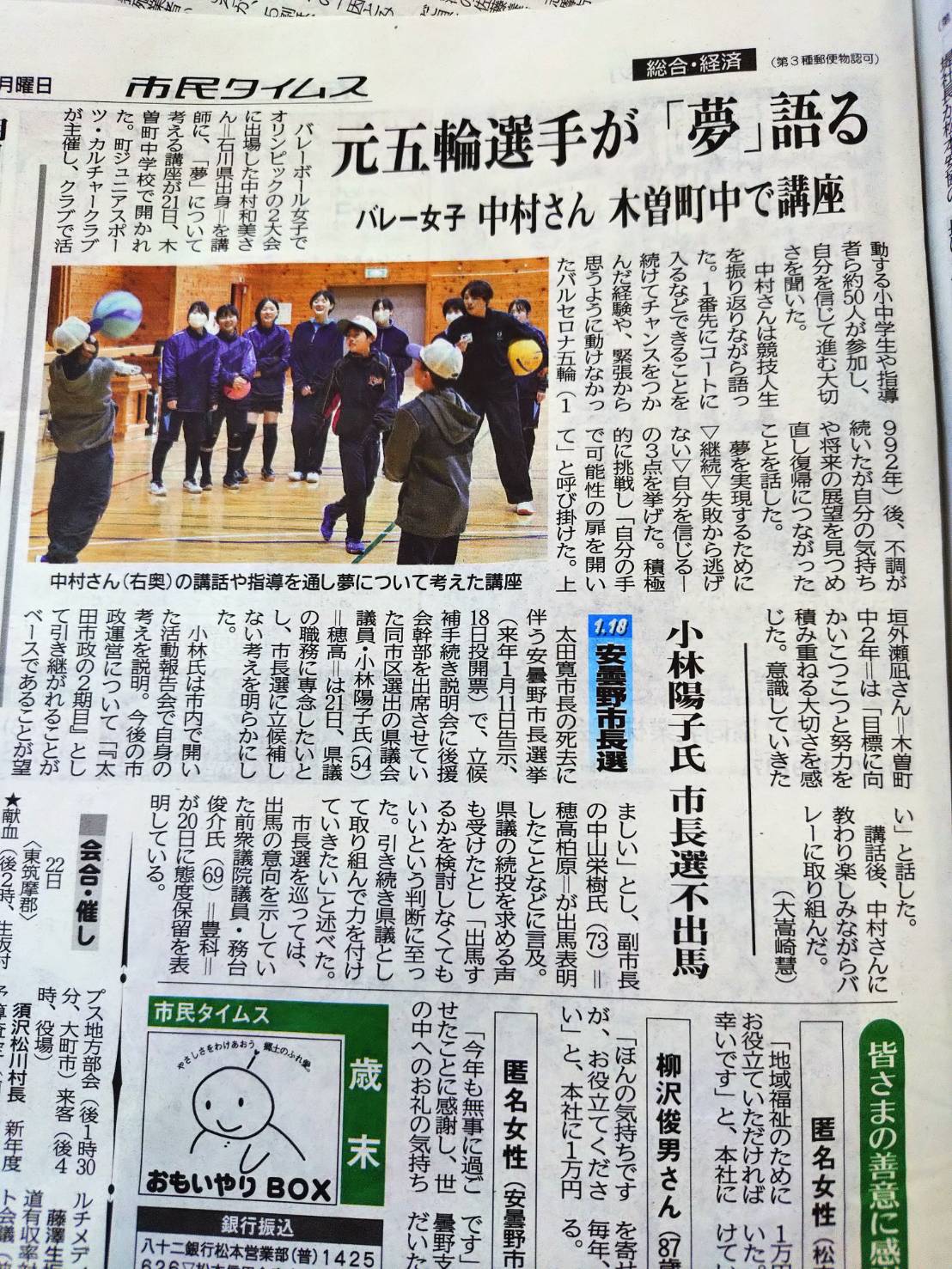 元五輪選手が「夢」語る バレー女子中村さん 木曽町中で講座